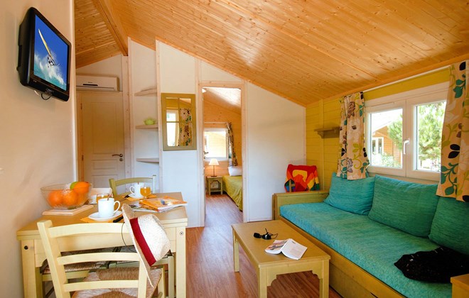64 klimatisierte Chalets mit 3 Zimmern für 5/6 Personen oder in 4 Zimmern für